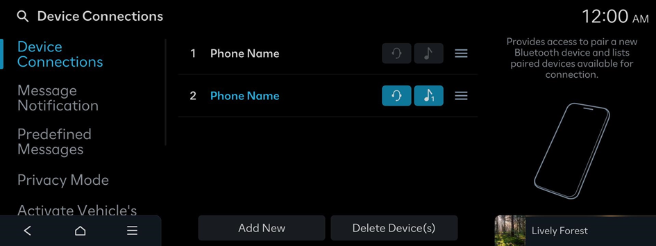 - On the Home screen, press Setup ▶ Device Connections ▶ Device Connections ▶ Add New.