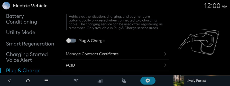 Vehicle authentication, charging, and payment are automatically processed when connected to a charging cable. The charging service can be used after registering as a member. Only available in Plug & Charge service areas.