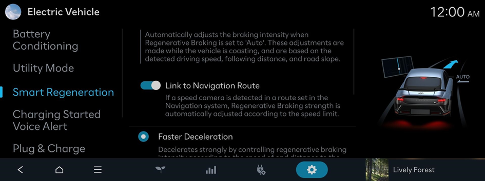 While coasting with the regenerative braking set to Auto, the regenerative braking level will be automatically adjusted based on the distance from the vehicle ahead, driving speed, and road incline.