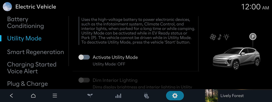You can set convenience features available for electric vehicles.