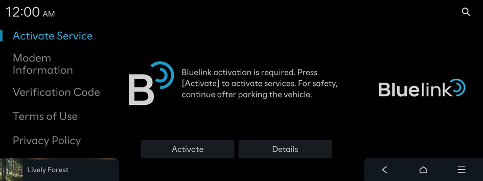 - On the Home screen, press Setup ▶ Bluelink ▶ Activate Service.