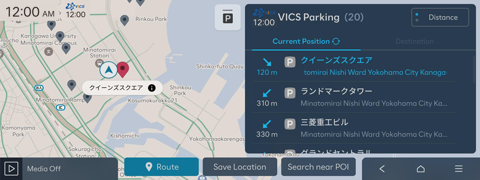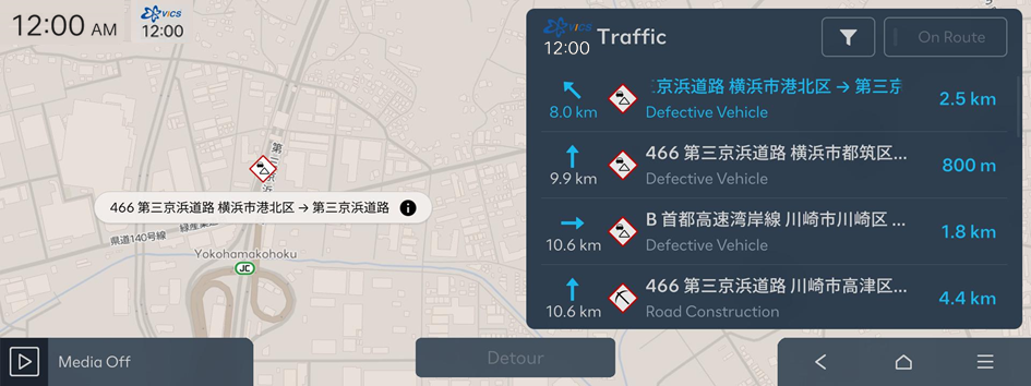 You can view VICS information, Such as real-time traffic conditions, including ongoing road work or traffic accidents, and information on parking garages/lots.