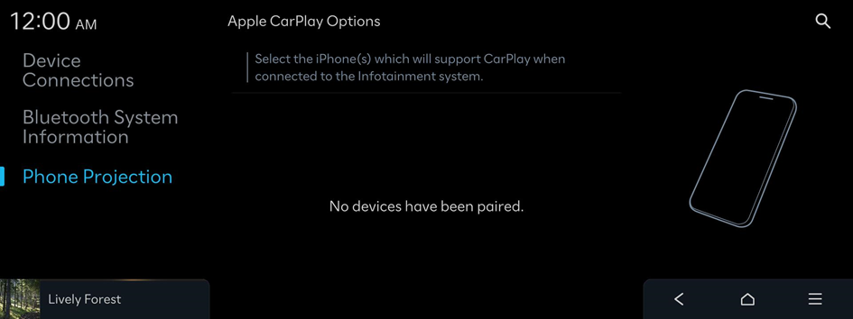 - On the Home screen, press Setup ▶ Device Connections ▶ Phone Projection ▶ Apple CarPlay Options.