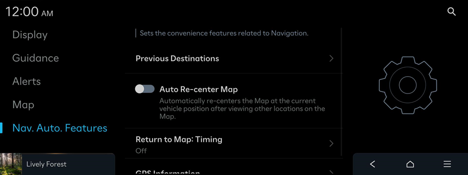 - • Display Previous Destinations when entering the Map screen: Displays a list of recent destinations in a pop-up window when the navigation system starts.