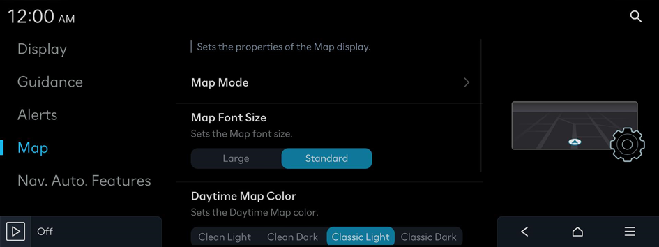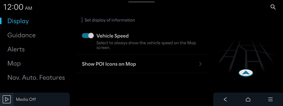 - Select Auto Display when Charging is Needed is set for display of EV Charging Stations to show nearby charging stations on the map only when the vehicle needs charging (EV only).