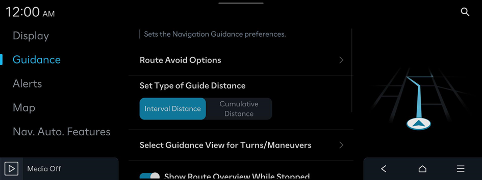 You can configure the navigation operations, screen display, voice guidance, and other settings.