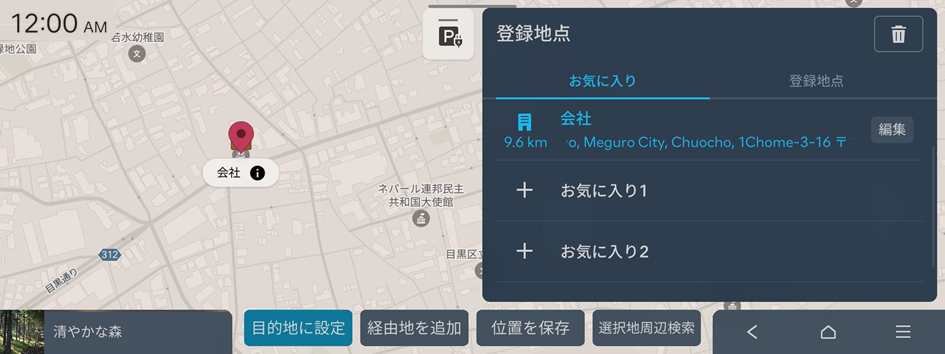 現在地またはよく行く場所をあらかじめ登録しておくと、簡単に目的地に設定できます。