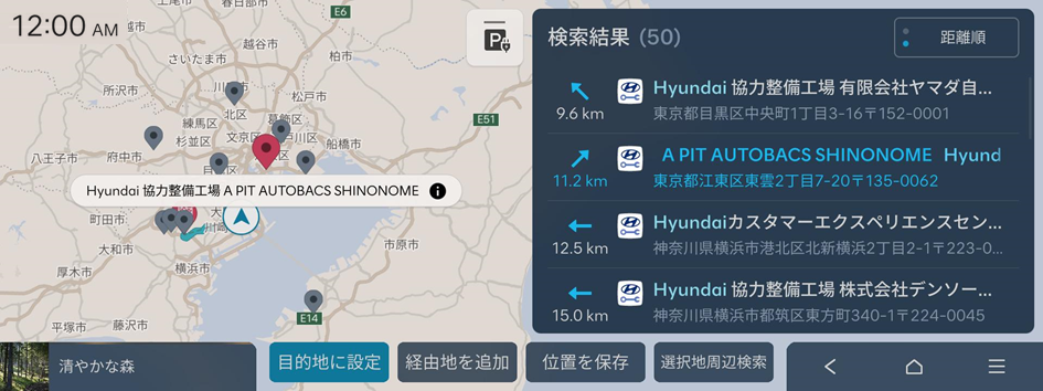 - 検索画面で、目的地の詳細(名称、住所、電話番号など)を入力し、目的地を選択します。 ▶ 「簡単に経路を見つける」をご覧ください。
