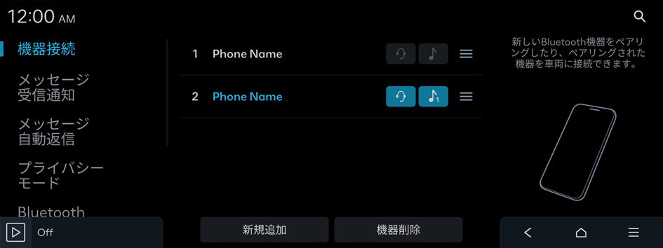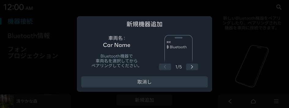 - Bluetooth機器リストに表示される車両名は、機器をペアリングするときに表示されるポップアップ画面で確認できます。