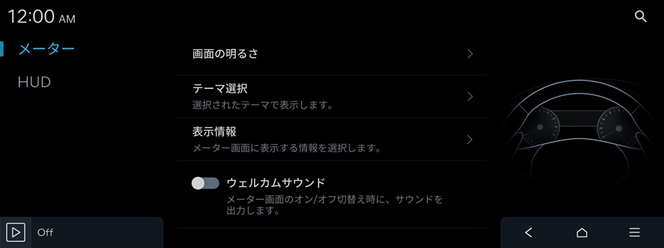 - ホーム画面で、設定 ▶ メーター/HUDを押します。