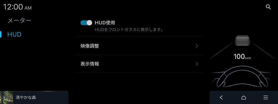 走行中に車速や道路情報などが表示されるヘッドアップディスプレイ機能を設定します。