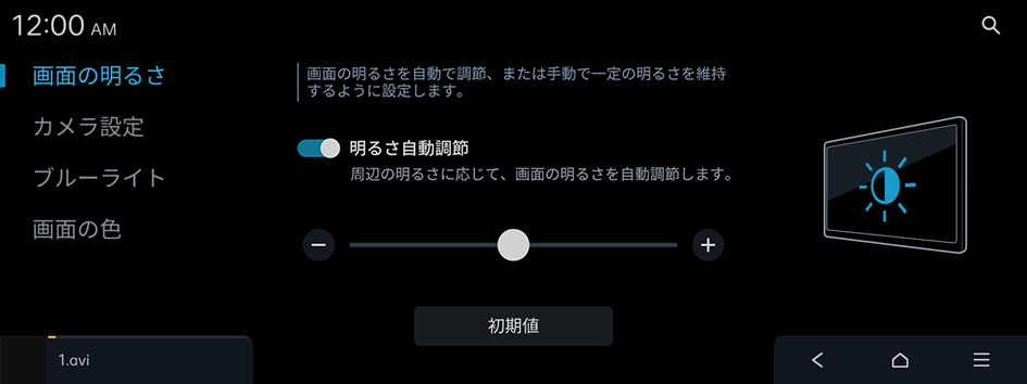 画面の明るさを自動で調節、または手動で一定の明るさを維持するように設定します。