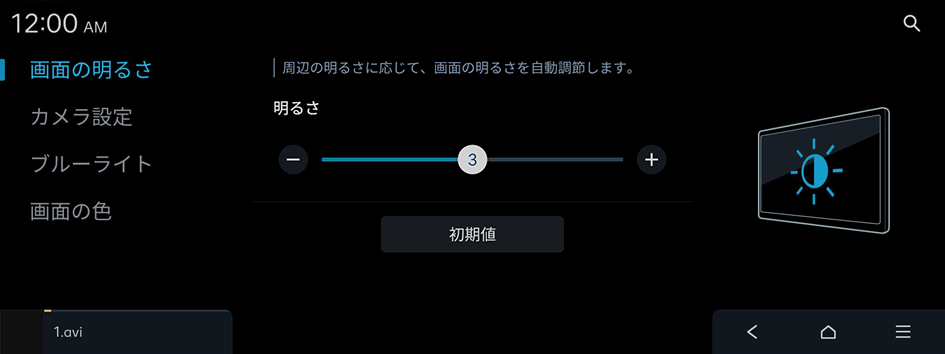 - 画面の明るさをすべて初期化するには、初期値を押します。