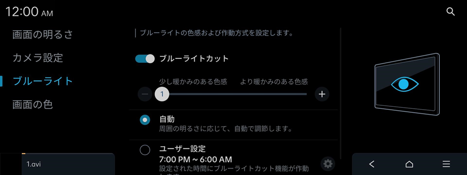 - • ユーザー設定:設定された時間にブルーライトカット機能が作動します。