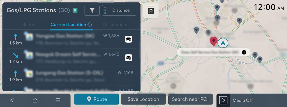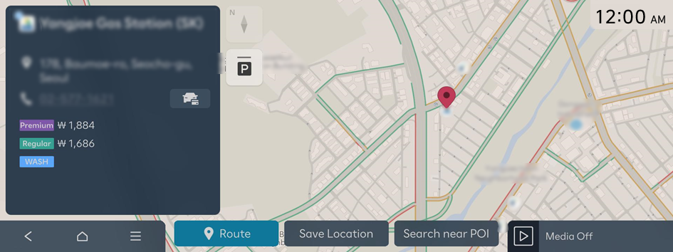 - • Select a nearby In-car Payment-affiliated gas station from the Map screen, and press