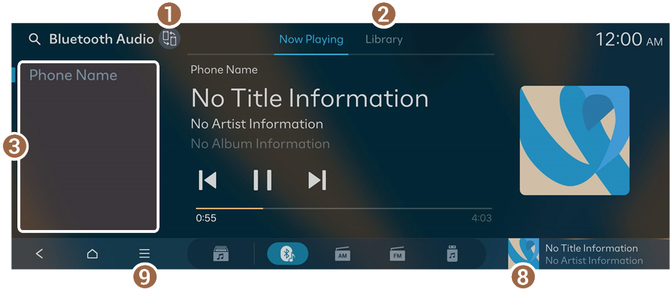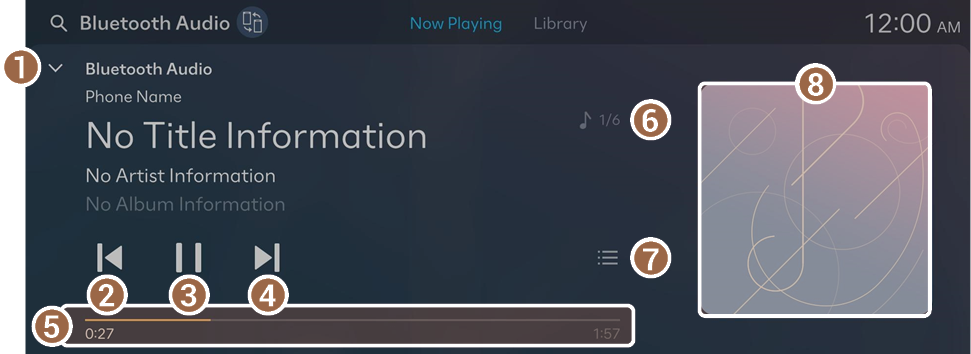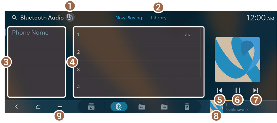 - Displays the Bluetooth Audio player screen.
