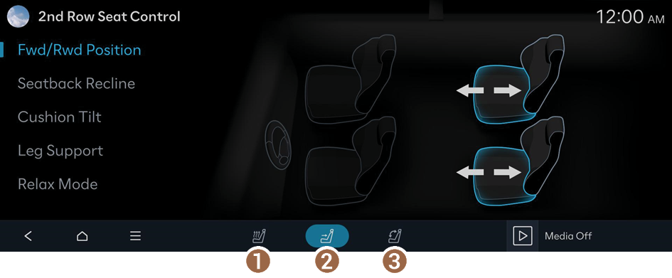 ▶ Seat Settings. - While driving, it is not possible to adjust and save a seat position or load a saved seat position. First, stop the vehicle, and then change a seat position.