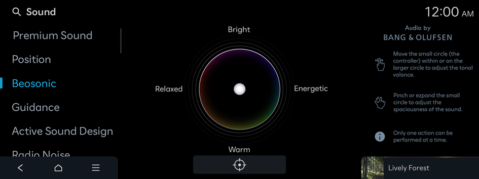 Touch a point on the vehicle diagram where you would like to focus the sound. Use the arrows to fine-tune the position.