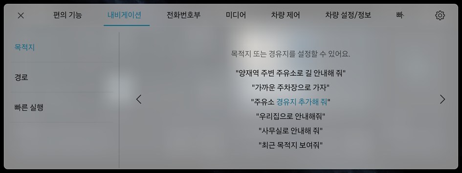 Turn on voice recognition mode and then say "전체 기능" to view all commands that are available for use.