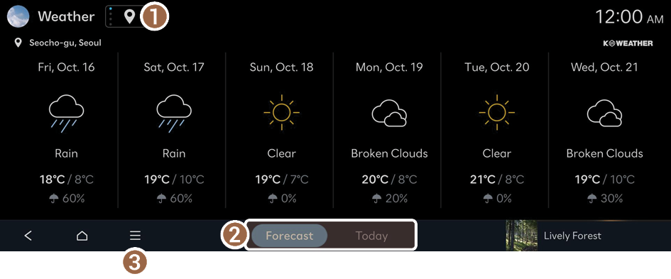 - Select the location to display on the weather forecast screen.