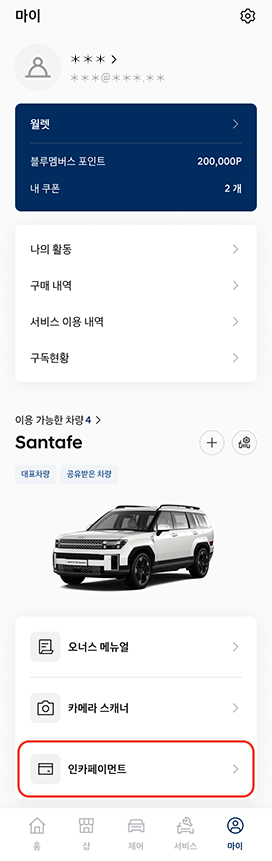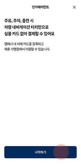 본인 인증이 가능한 개인 명의 회원만 인카페이먼트 서비스에 가입할 수 있으며, 법인명의 차량을 소유하신 고객도 계정연동을 완료하신 경우 서비스에 가입할 수 있습니다.
