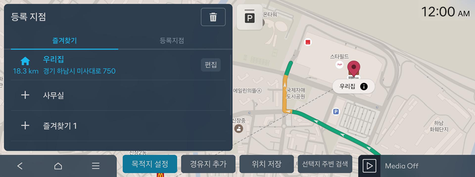 현재 위치나 자주 사용하는 장소를 미리 등록해 두었다가 간편하게 목적지로 설정할 수 있습니다.