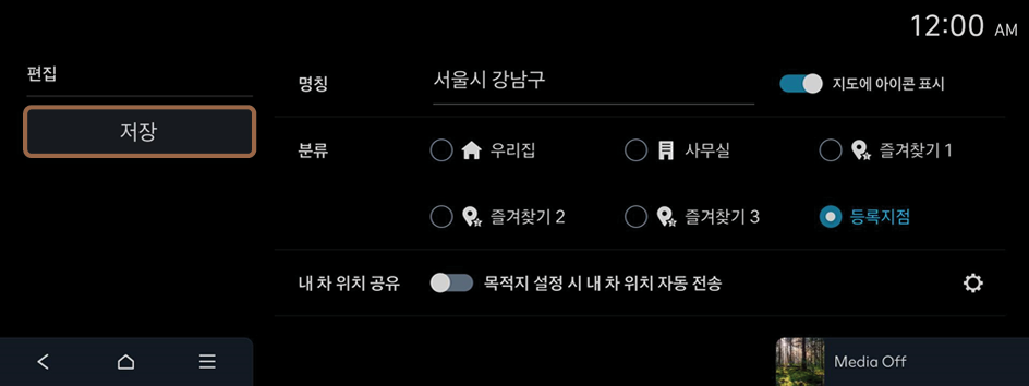 ▶ 위치 저장을 누르세요. - 등록 지점의 세부 정보를 설정한 후 저장을 누르세요.