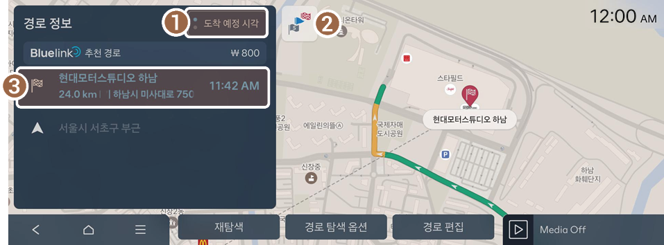 경로 정보를 확인하려면 길 안내 화면에서 해당 영역을 누르세요.