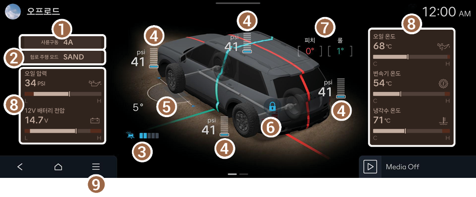 오프로드 주행과 관련된 정보를 확인할 수 있습니다.