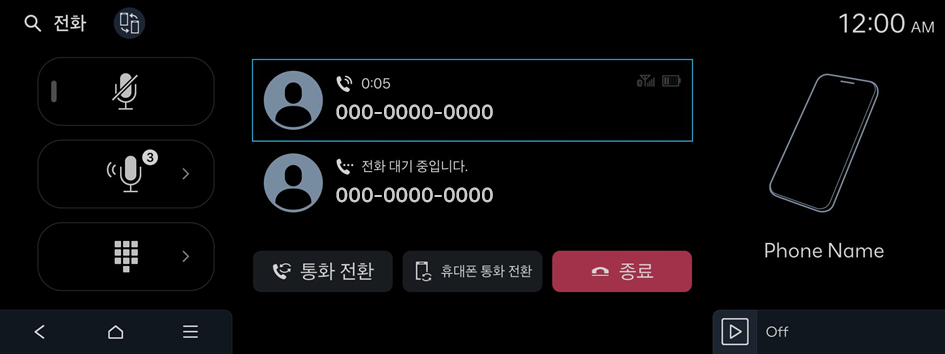 - 블루투스 전화로 통화 중에는 미디어 모드 등 다른 화면으로 이동할 수 없습니다.