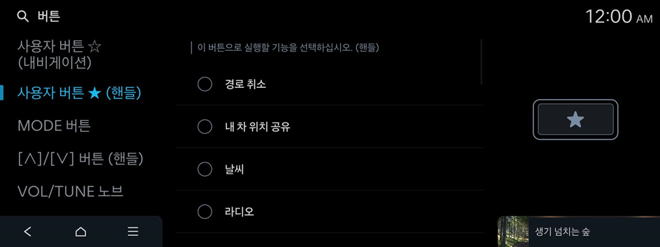 조작 패널이나 스티어링 휠의 버튼을 눌렀을 때 실행할 기능을 설정할 수 있습니다.