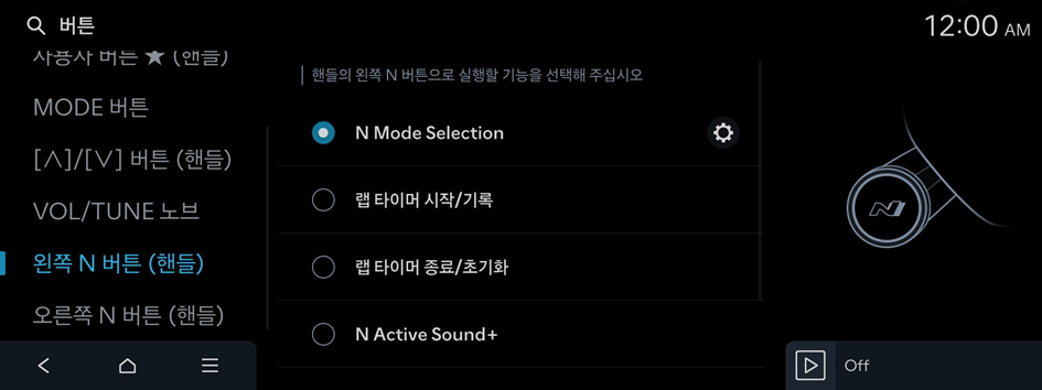 핸들의 왼쪽 N 버튼으로 실행할 기능을 선택해 주십시오.