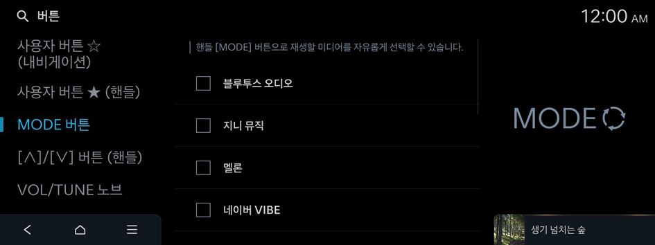 핸들 MODE 버튼으로 재생할 미디어를 자유롭게 선택할 수 있습니다.