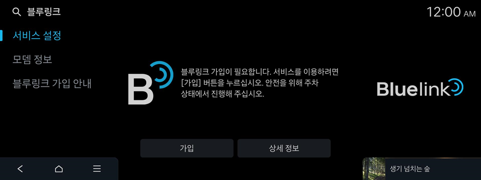 블루링크 서비스에 가입하거나 모뎀 정보를 확인할 수 있습니다.