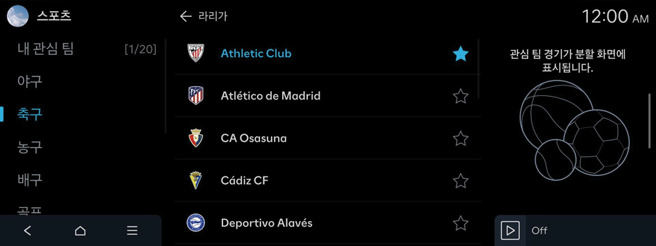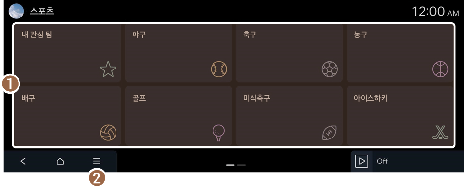 - 정보를 확인할 스포츠 경기 종목을 선택하거나 좋아하는 팀을 관심 팀으로 설정할 수 있습니다.