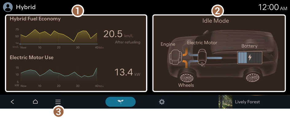 You can see the fuel economy and energy flows of the vehicle.
