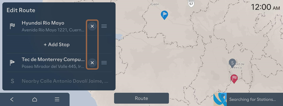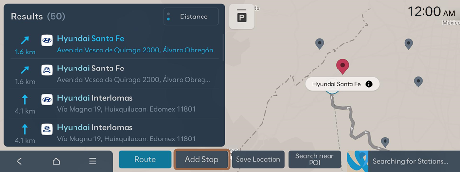 - On the search result screen, press Add Stop.