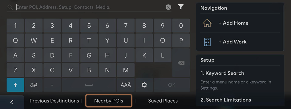 To change the type of surrounding POIs on the map, move to the Map screen and then press