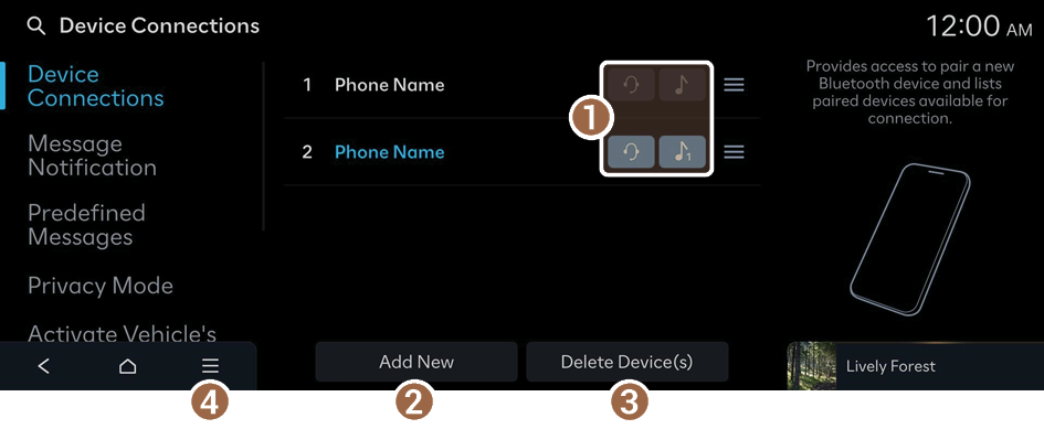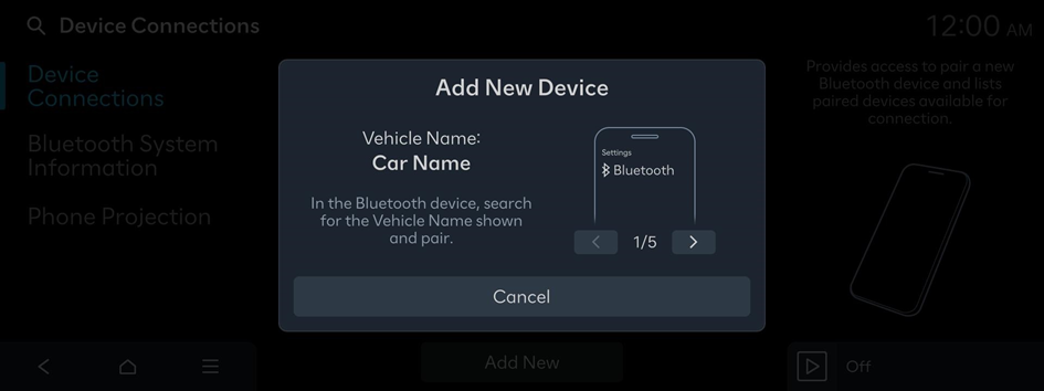 - Turn on Bluetooth on the Bluetooth device to connect and select the vehicle system from the list of searched devices.