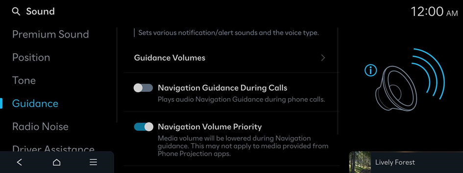 Media volume will be lowered during Navigation guidance. This may not apply to media provided from Phone Projection apps.