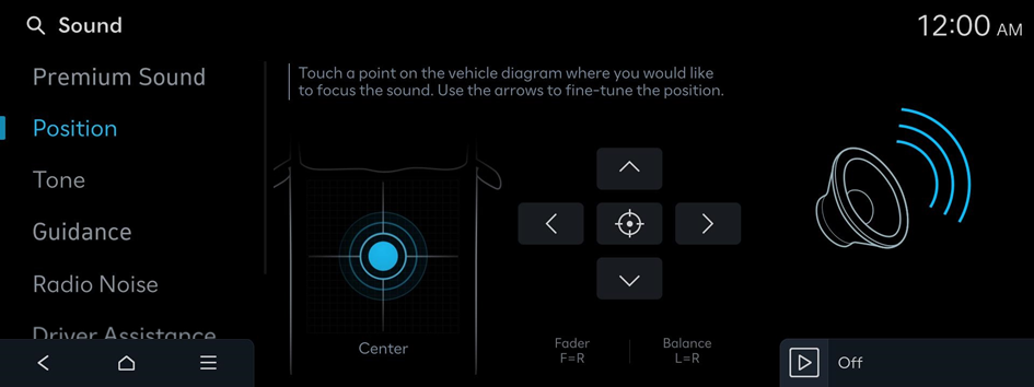 Touch a point on the vehicle diagram where you would like to focus the sound. Use the arrows to fine-tune the position.