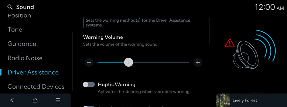Turns off the audible warning used for the Lane Safety feature if both the audible warning sound and the haptic warning are on.