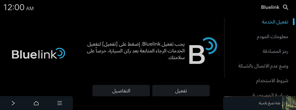 - في الشاشة الرئيسية، اضغط على الإعدادات ◀ Bluelink ◀ تفعيل الخدمة.