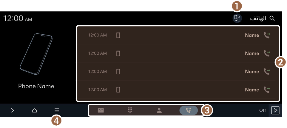 - • إعدادات اتصال الهاتف: تغيير إعدادات Bluetooth.