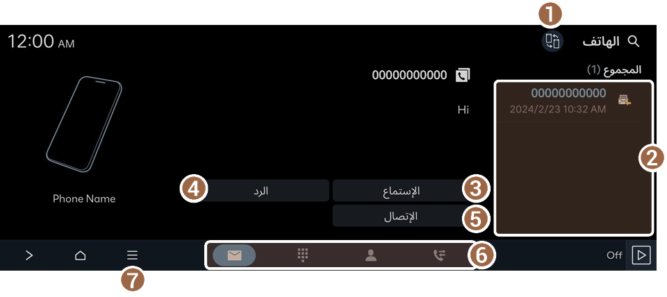 - عند اتصال هاتف iPhone بالنظام، تكون هناك بعض القيود عند استلام الرسائل على النحو التالي: