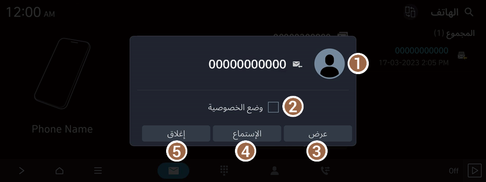 - في حالة عدم حفظ معلومات المُرسِل، لن يظهر سوى رقم الهاتف.