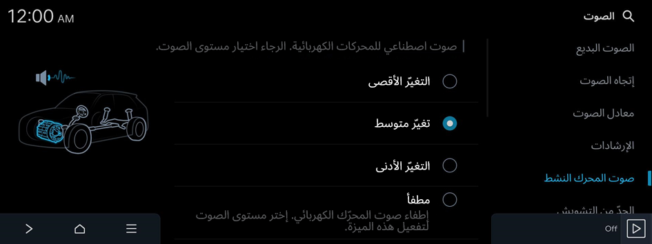 صوت اصطناعي للمحركات الكهربائية. الرجاء اختيار مستوى الصوت.