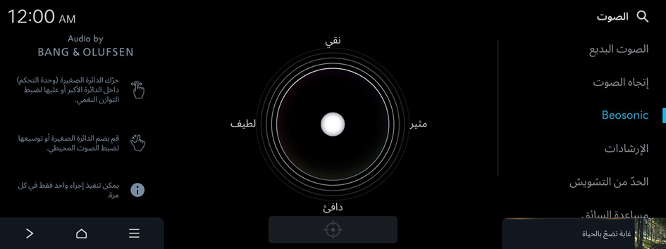 - • Reference: يقدم صوت صافيًا مع التركيز على مصدر الصوت الأصلي، لتوفير تجربة صوتية متوازنة لجميع الركاب في السيارة.