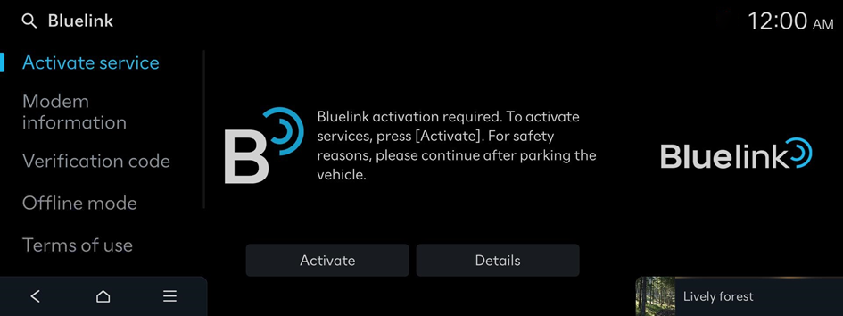 - On the Home screen, press Settings ▶ Bluelink ▶ Activate service.