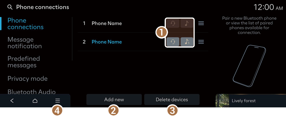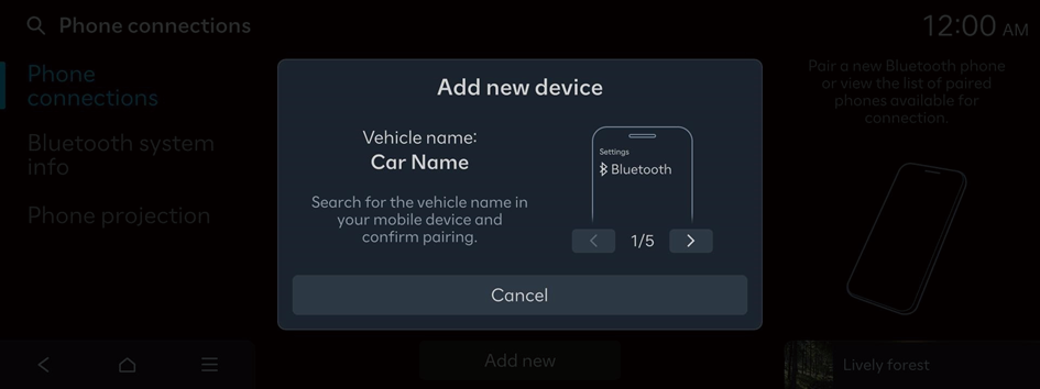 2. Turn on Bluetooth on the Bluetooth device to connect and select the vehicle system from the list of searched devices.